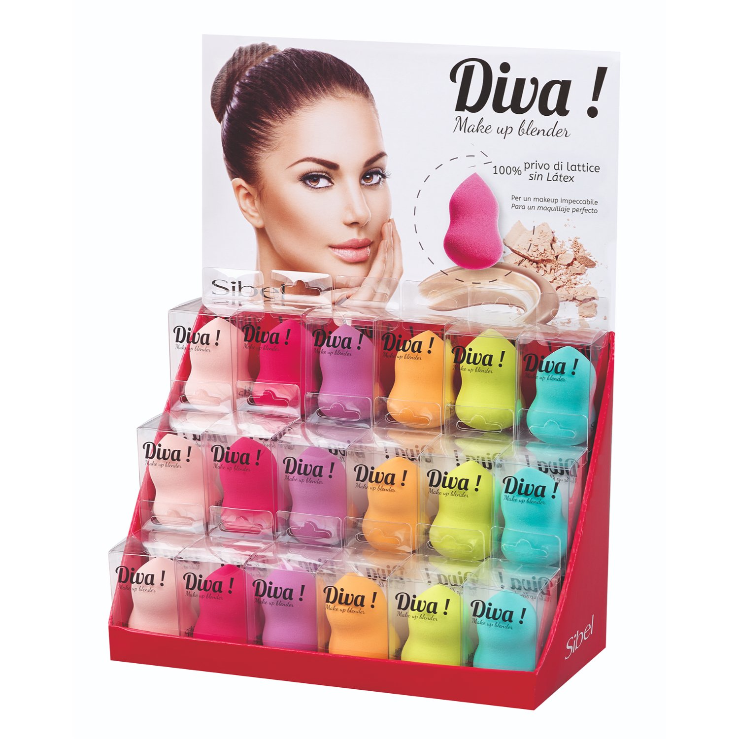 Sibel Cosmetische Sponsjes Make-Up Blender Diva Display 18 stuks